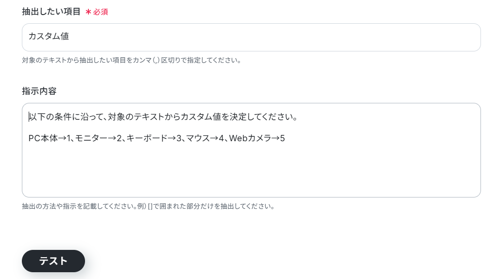 入力できたら、「テスト」をクリック。