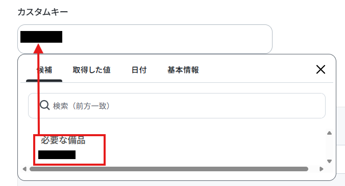 カスタムキーは該当するものを候補から選択します。
