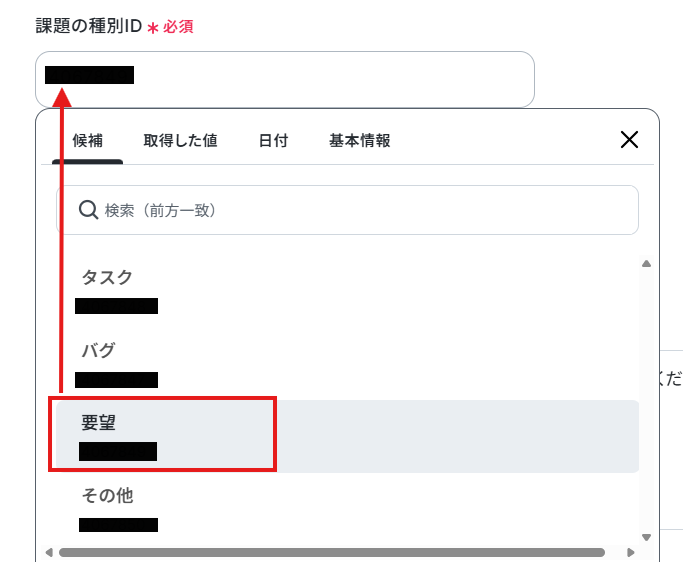 課題の種別IDは候補から選択してください。