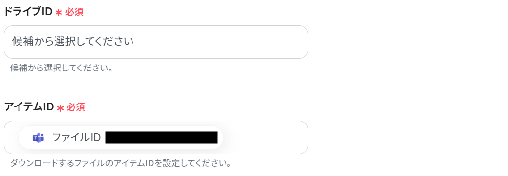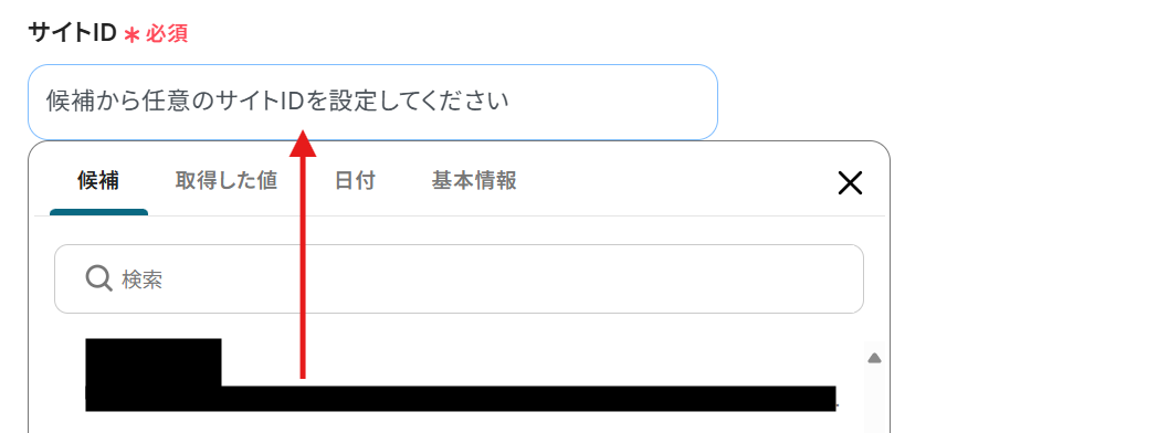 サイトID :Microsoft SharePoint内にある、Microsoft TeamsのチームIDと同じサイトを選択してください。