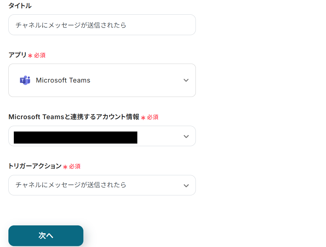 ステップ3:Microsoft Teamsのトリガー設定