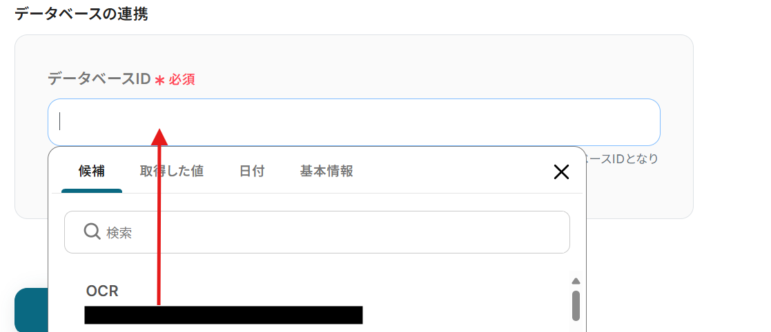 下記のように候補からデータベースの連携をお願いします。