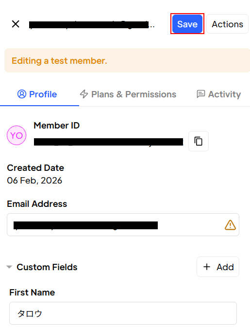 次に、テストに利用したいMemberの情報を更新しましょう。