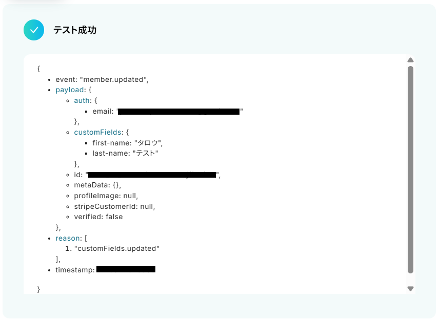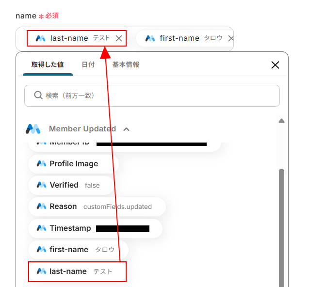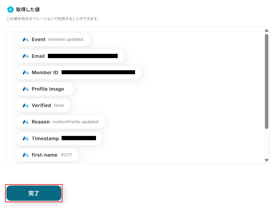 - Memberstackをトリガーとして使用した際の回答内容を取得する方法は「「取得する値」を追加する方法」を参照ください。