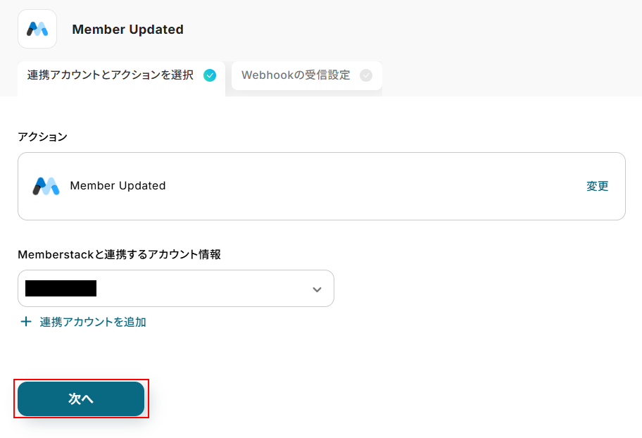 - 次に、トリガーでMemberstackを選択し、「メンバー情報が更新されたら」というアクションを設定します。