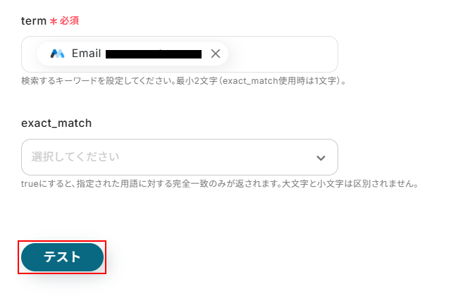 exact_matchの項目について、今回は使用しないため空欄となっておりますが、使用したい方は注釈を確認し設定してください。