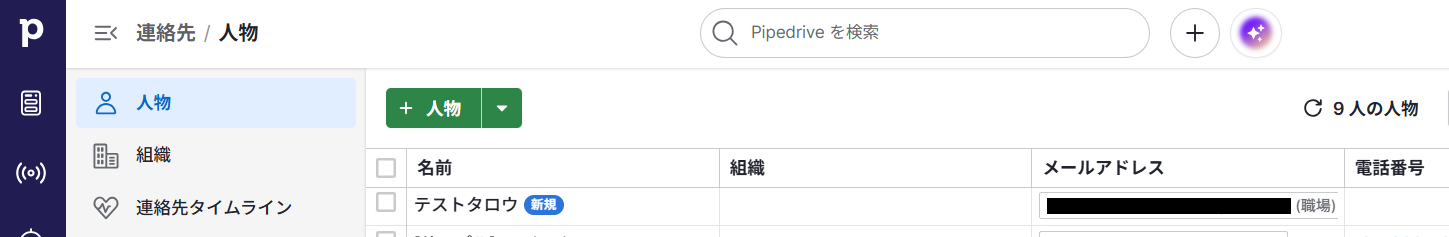 Pipedriveに登録されていない人物(これから登録する人物)であるため問題ありません。