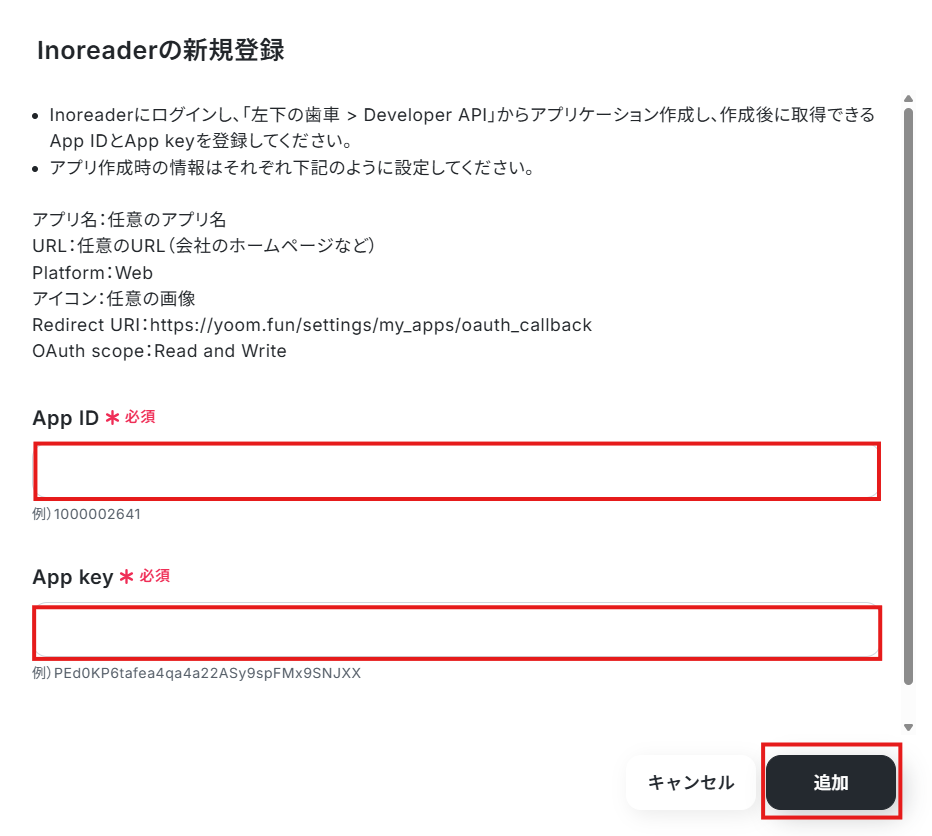 - InoreaderとYoomを連携してください。