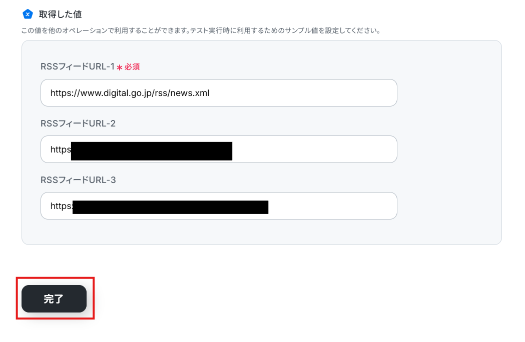 - Inoreaderのトリガー設定では、通知のきっかけとしたいRSSフィードのURLを任意で設定してください。