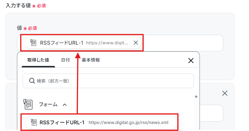 入力する値を取得した値から設定します。