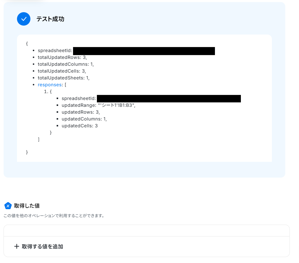 ステップ5:Google スプレッドシート|値を取得する