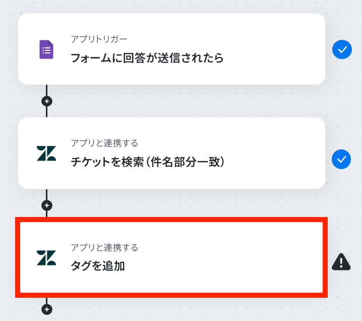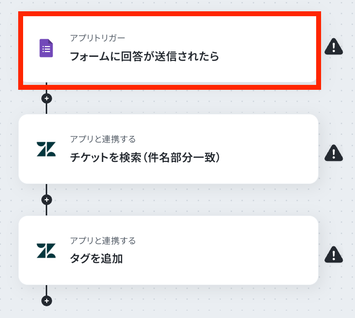 それではここから代表的な例として、Googleフォームに回答が送信されたら、その内容に基づいてZendeskのチケットを検索し、自動でタグを追加するフローを解説していきます!