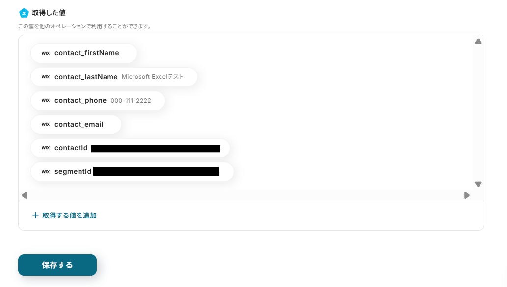 このワークフローを活用することで、Wixで特定の連絡先がセグメントに追加された際に自動的にMicrosoft Excelにデータが追加されます。