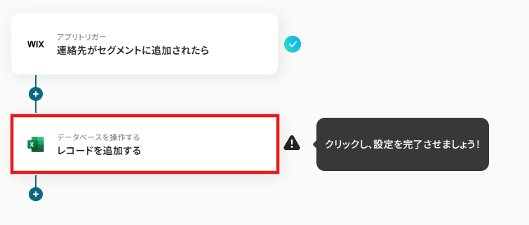Wixで新しい連絡先が特定のセグメントに追加されるたびに、その情報を自動でMicrosoft Excelの指定したシートに行として追加する基本的な連携フローです。