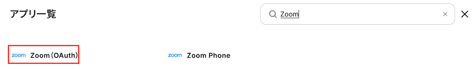 検索窓からZoomを検索し、Zoom(OAut)を選択してください。