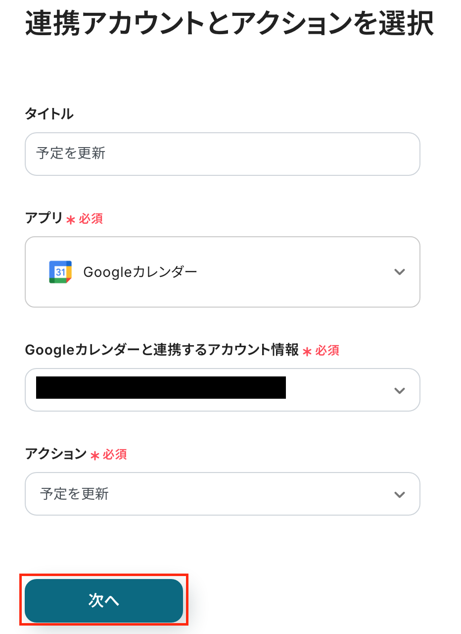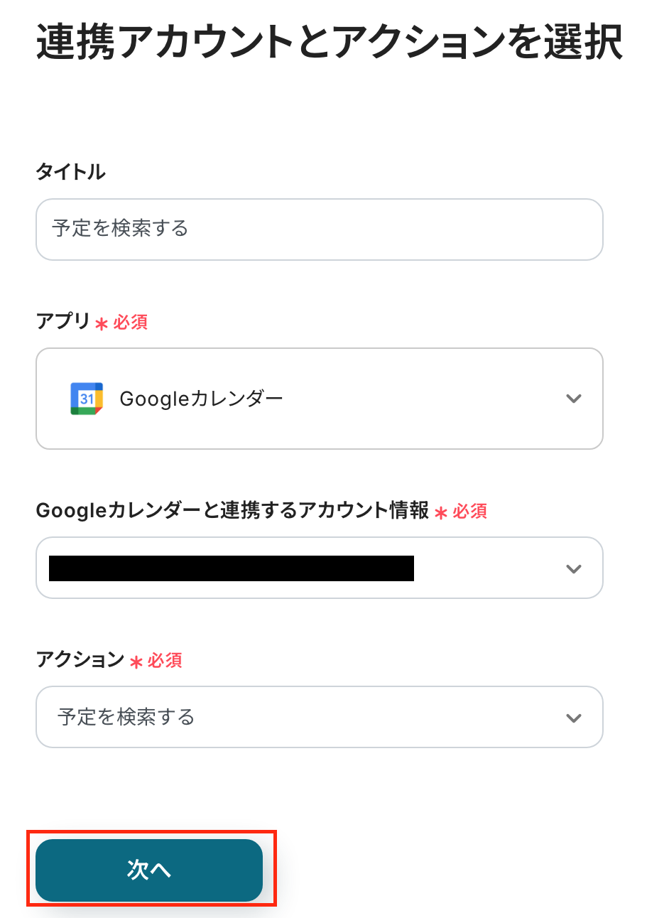 Googleカレンダーを選択すると、以下のような画面が表示されます。