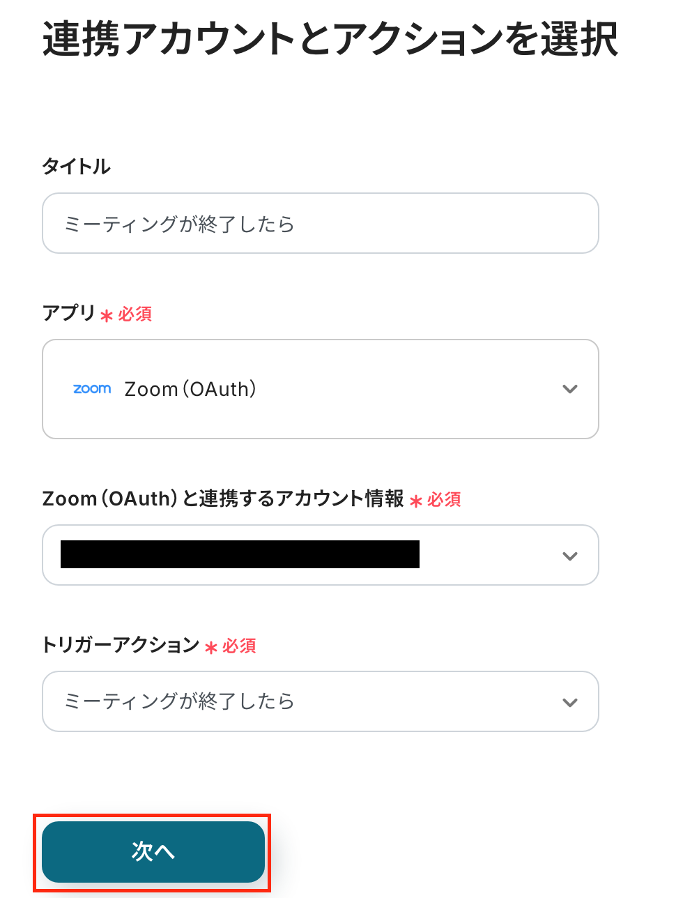 ※現在は「ミーティングが終了したら」「ミーティングのレコーディング情報を取得する」というアクションがZoomの有料プランのみの対応となっています。