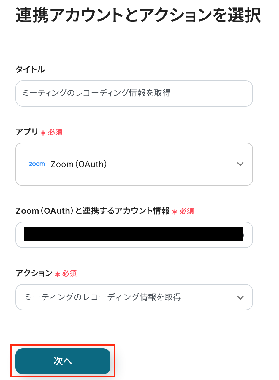 ・Zoomのプランによって利用できるアクションとそうでないアクションがあるため、ご注意ください。