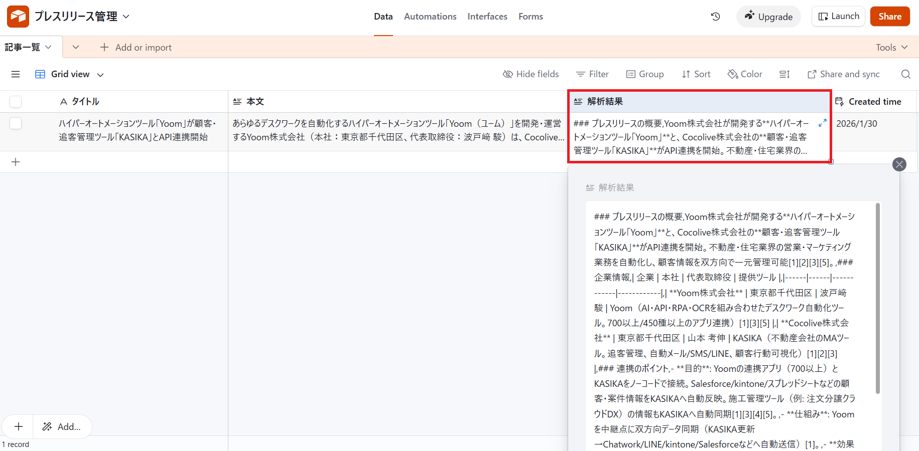 Airtableでレコードが登録されたら、Perplexityで解析し結果を反映する方法 でした!