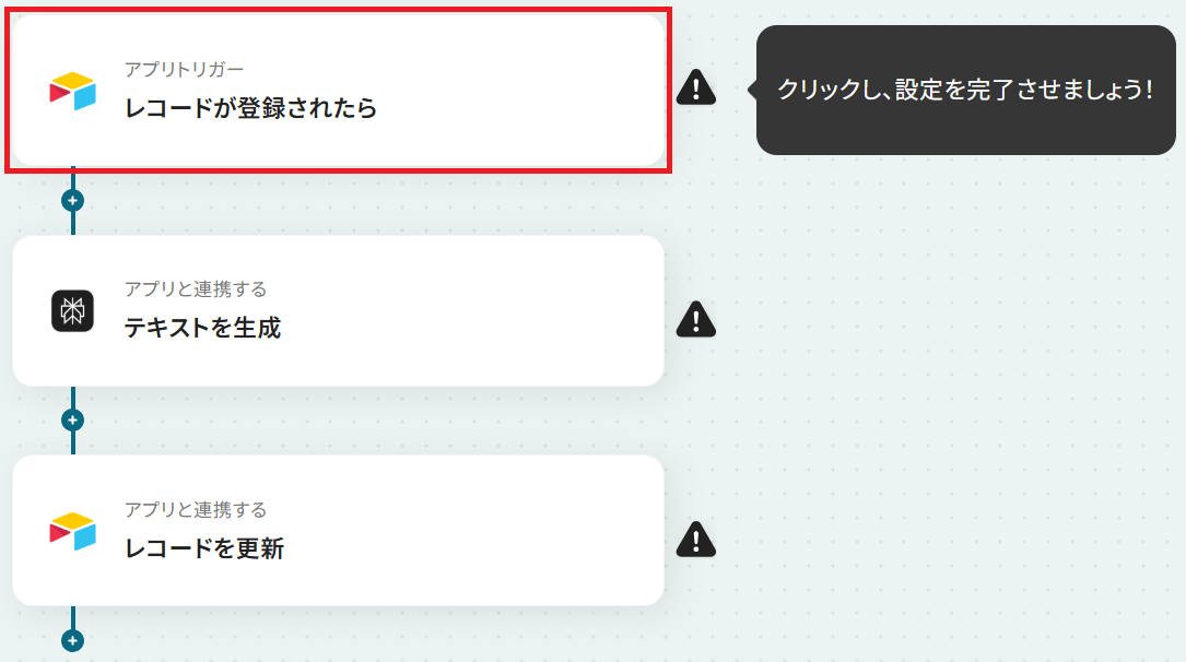 用意できたらYoomの設定画面に戻り「レコードが登録されたら」をクリックてください。