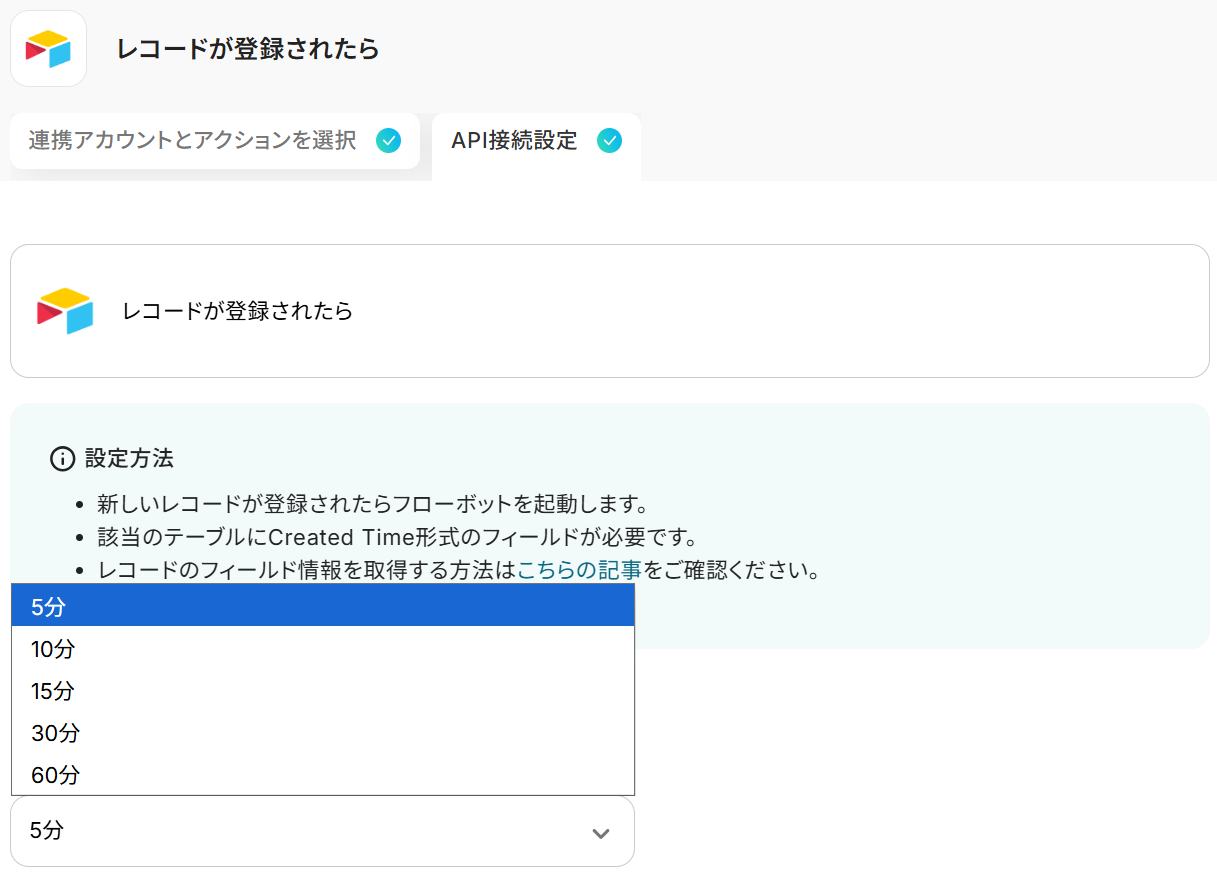 ・トリガーは5分、10分、15分、30分、60分の間隔で起動間隔を選択できます。