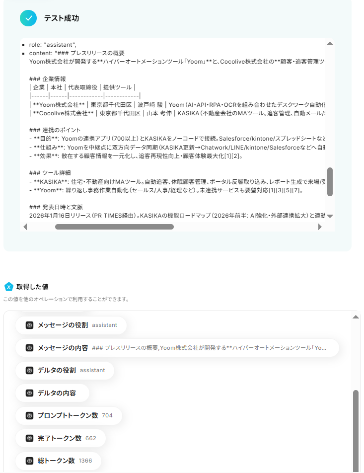 成功したら保存しましょう。Perplexityが記事情報の解析結果を出力してくれました!