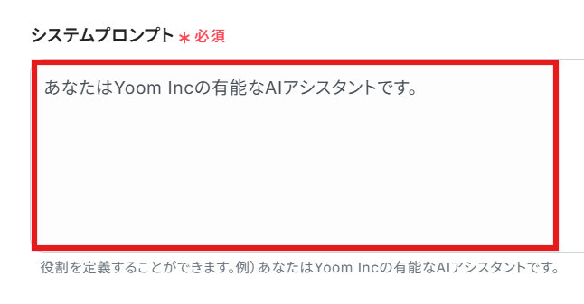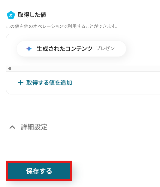 次に「プロンプト」を入力します。 対象となるデータは「取得した値」から選択できます。