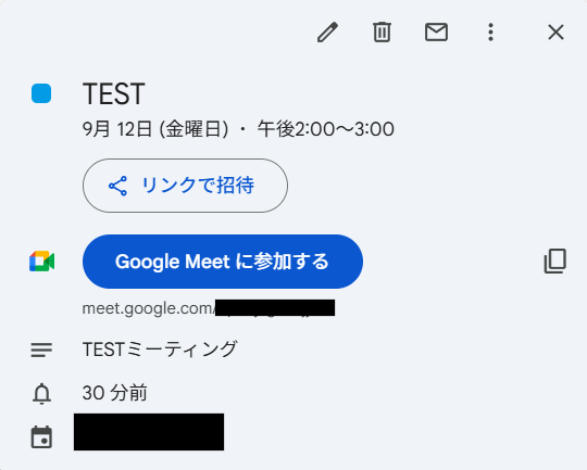 入力できたらテストを行いますが、テストに使用する予定をまだGoogleカレンダーで作成していない場合、このタイミングで作成しておきましょう。 今回は以下の予定を作成してみました。