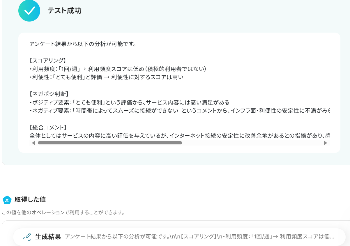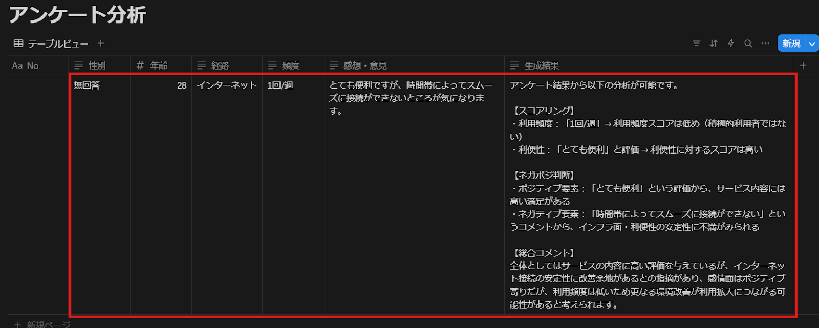 以上が「フォームでアンケートが回答されたら、AIでフリーコメント内の満足度分析をしてNotionにレコードを追加する」方法でした。