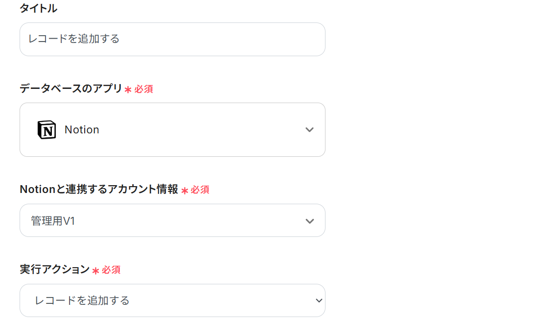 その後、Notionに自動的にレコードを追加することで、データの一元管理と活用がスムーズに行えます。