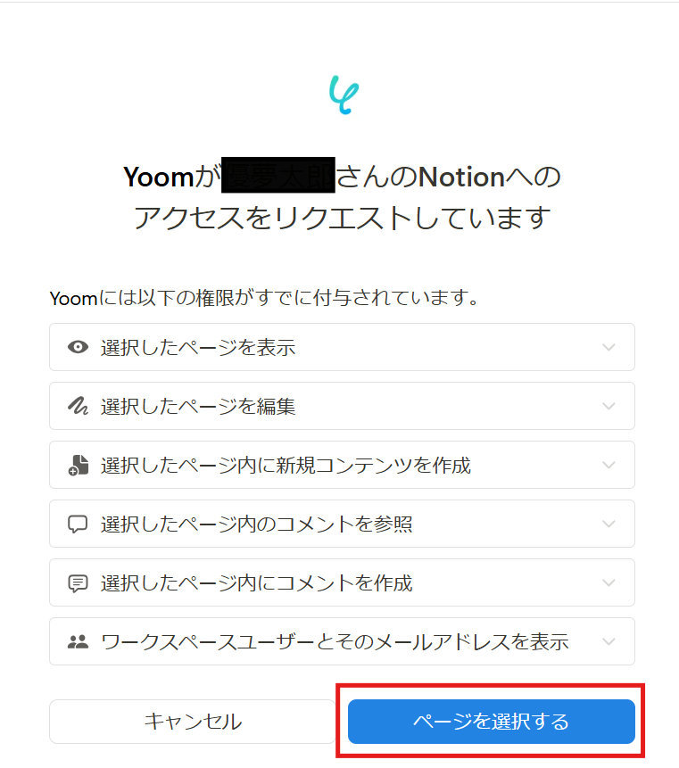 ログインが完了したら下記の画面で作成したページを選択し、アクセスしたいページの許可をお願いします。
