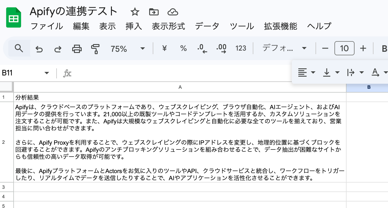 以上が、フォームからURLが送信されたら、ApifyでActorを実行しChatGPTによる解析とGoogle スプレッドシートへの追加を自動化する手順になります。