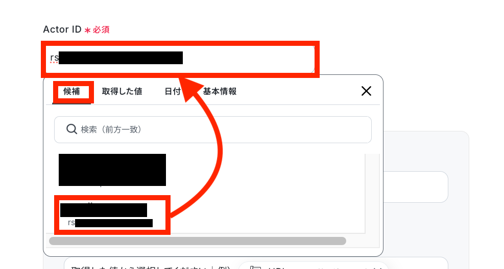 「Actor ID」を設定します。 入力欄をクリックすると、候補一覧が表示されるので連携したいIDをクリックしてください。