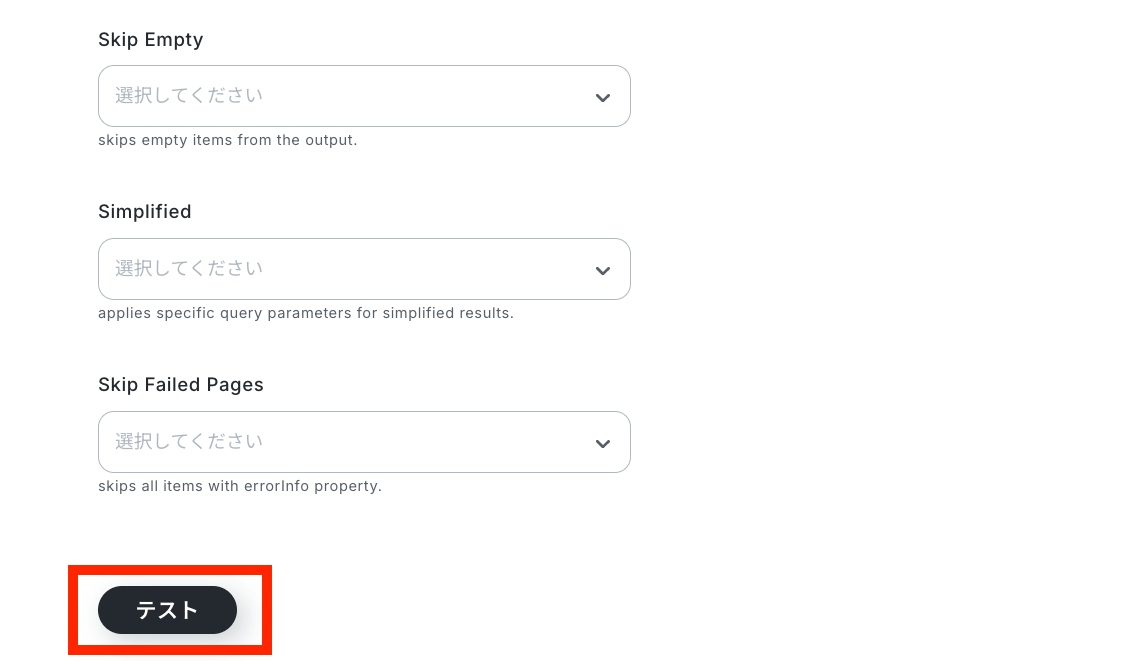 他の項目は任意項目なので、必要に応じて設定してください。 すべての設定が完了したら「テスト」をクリックします。