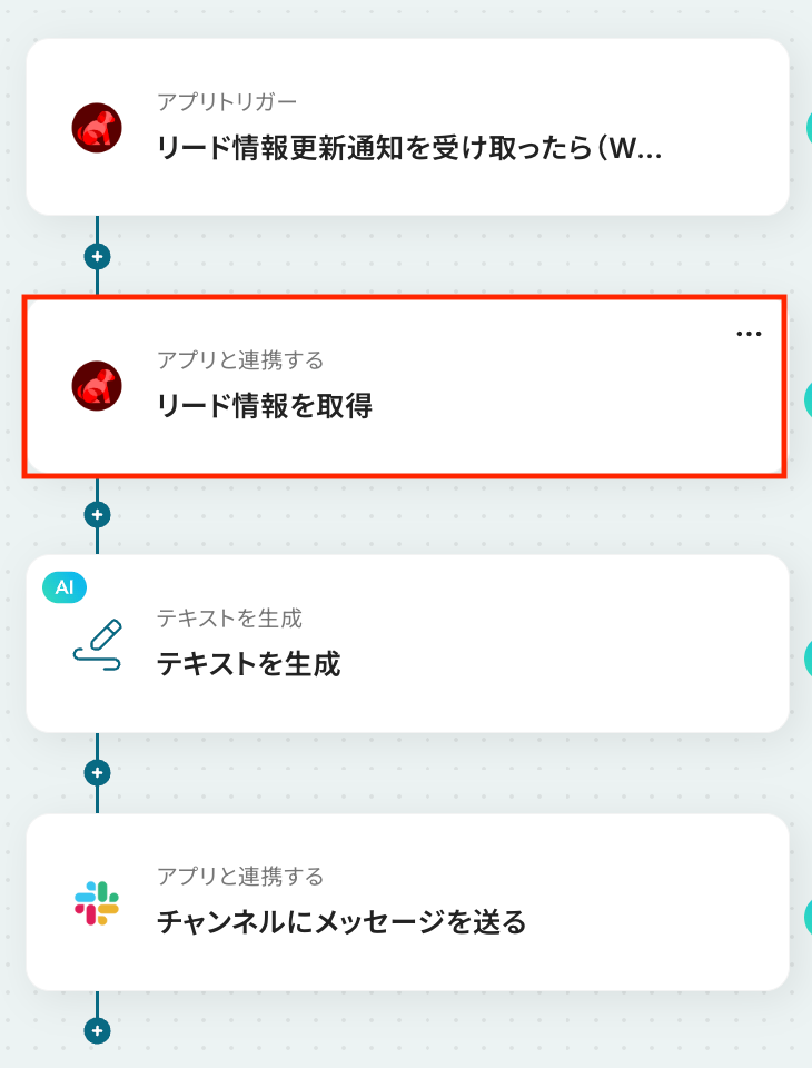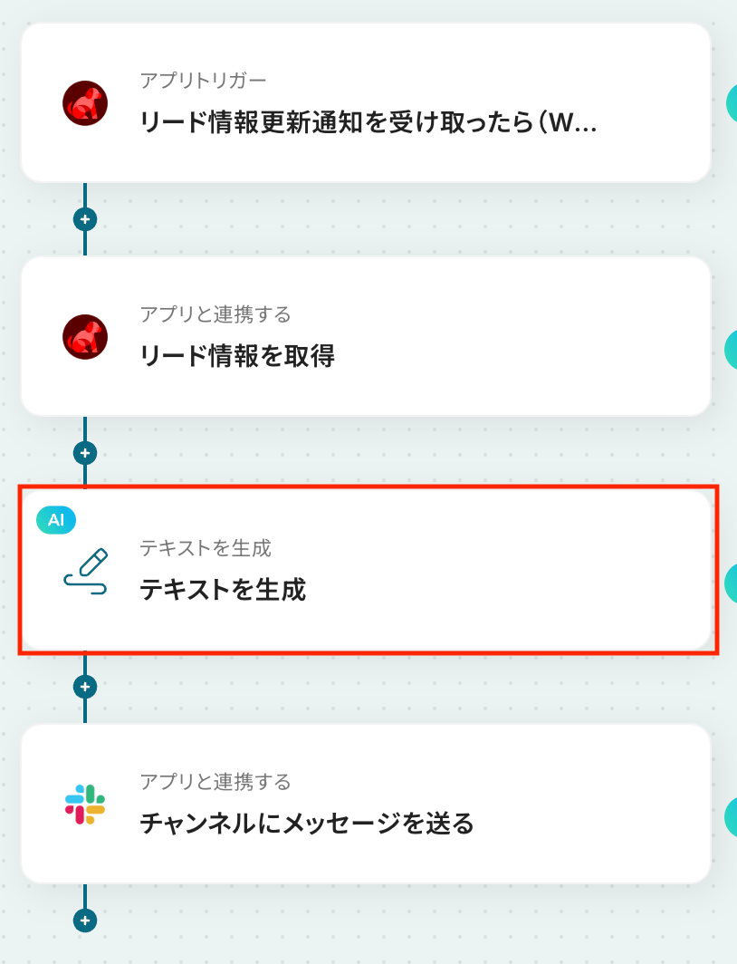 続いて、前のステップでBowNowから取得したリードの詳細情報を利用して、AIでメッセージ送信用のテキストを生成しましょう。