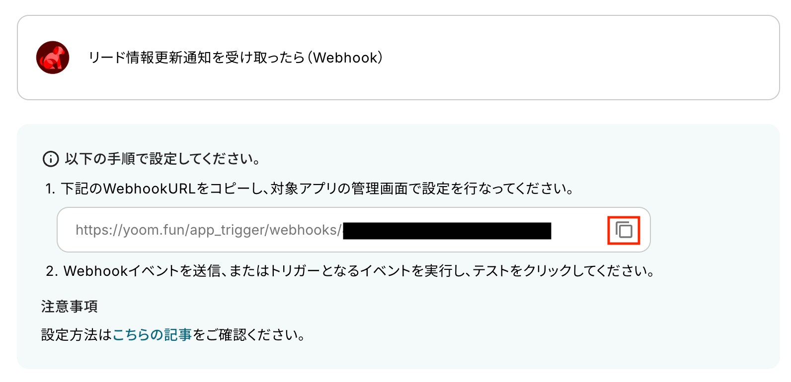 「リード情報更新通知を受け取ったら(Webhook)」をクリックします。