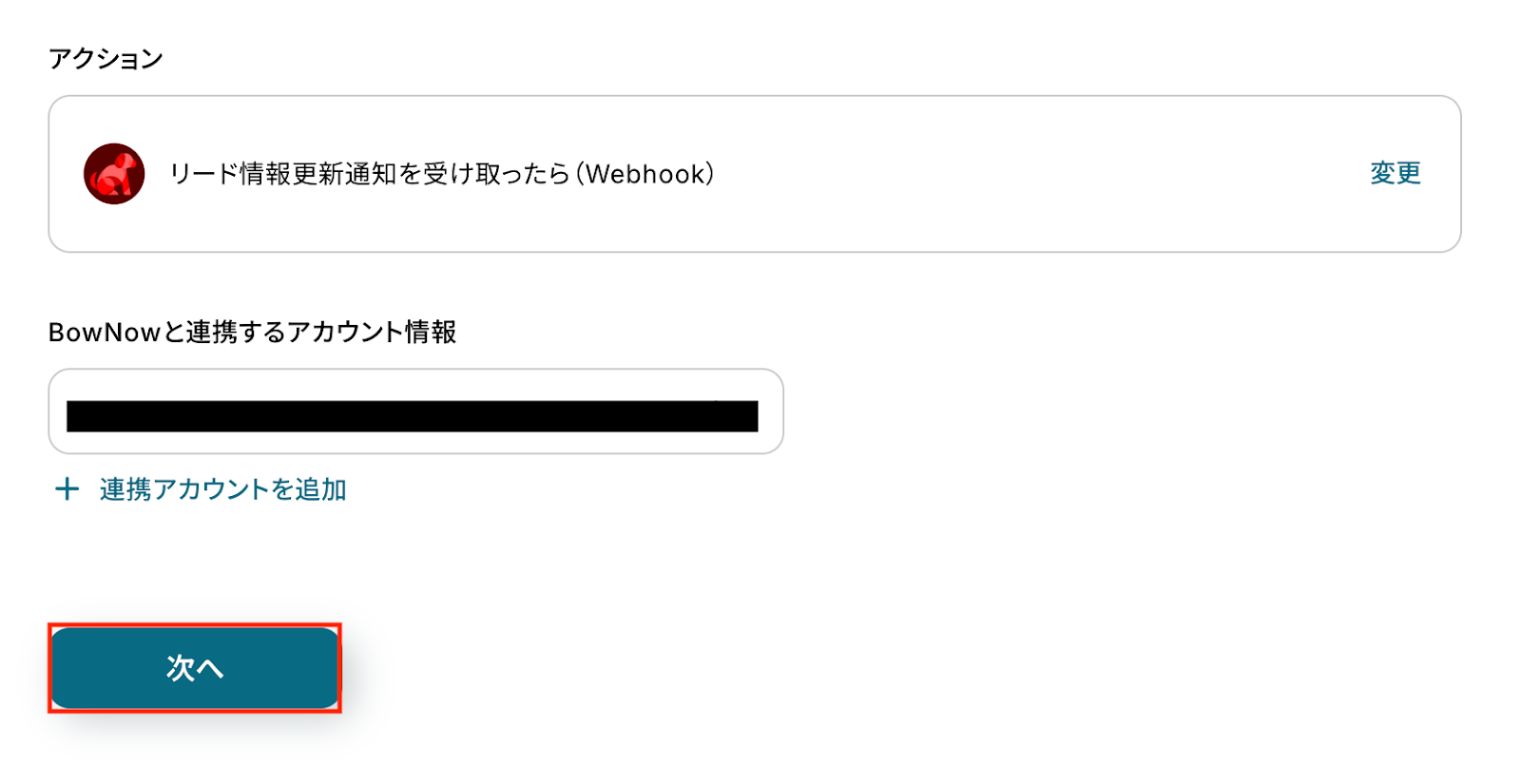 BowNowと連携するアカウント情報に問題がなければ、「次へ」をクリックします。
