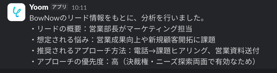 BowNowで新規リードが登録されたら、AIで情報を分析し結果をSlackで通知する