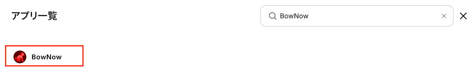 新規接続をクリックしたあと、アプリのメニュー一覧が表示されるのでBowNowと検索し、対象アプリをクリックしてください。