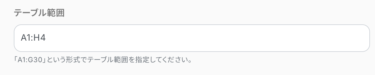 Google スプレッドシートに合わせて「テーブル範囲」を入力します。