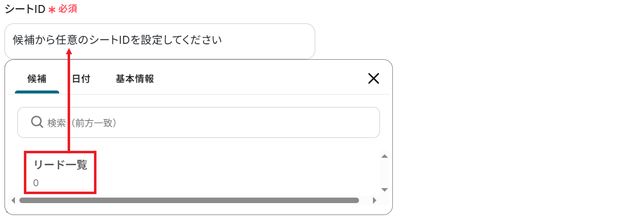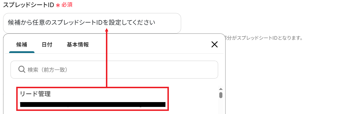 次に、連携するスプレッドシートID・シートIDを候補から選択しましょう。