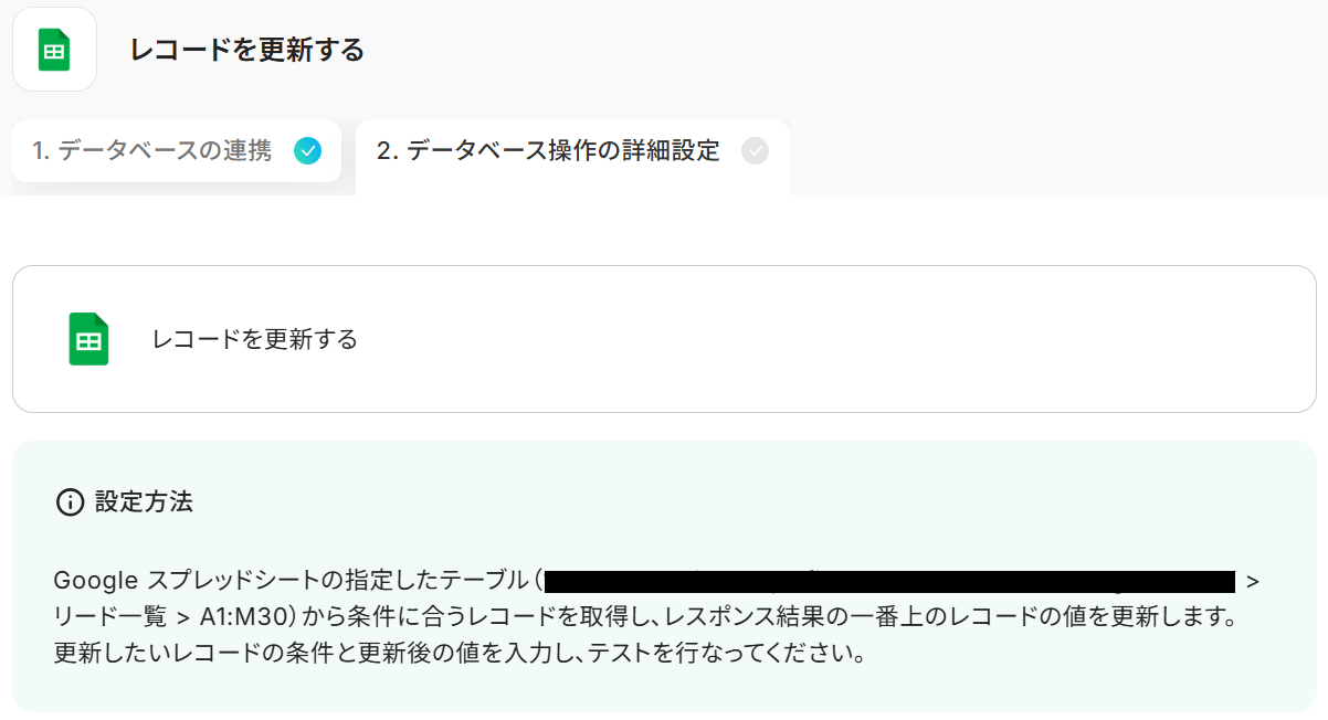 ステップ6:Google スプレッドシートのレコード更新設定