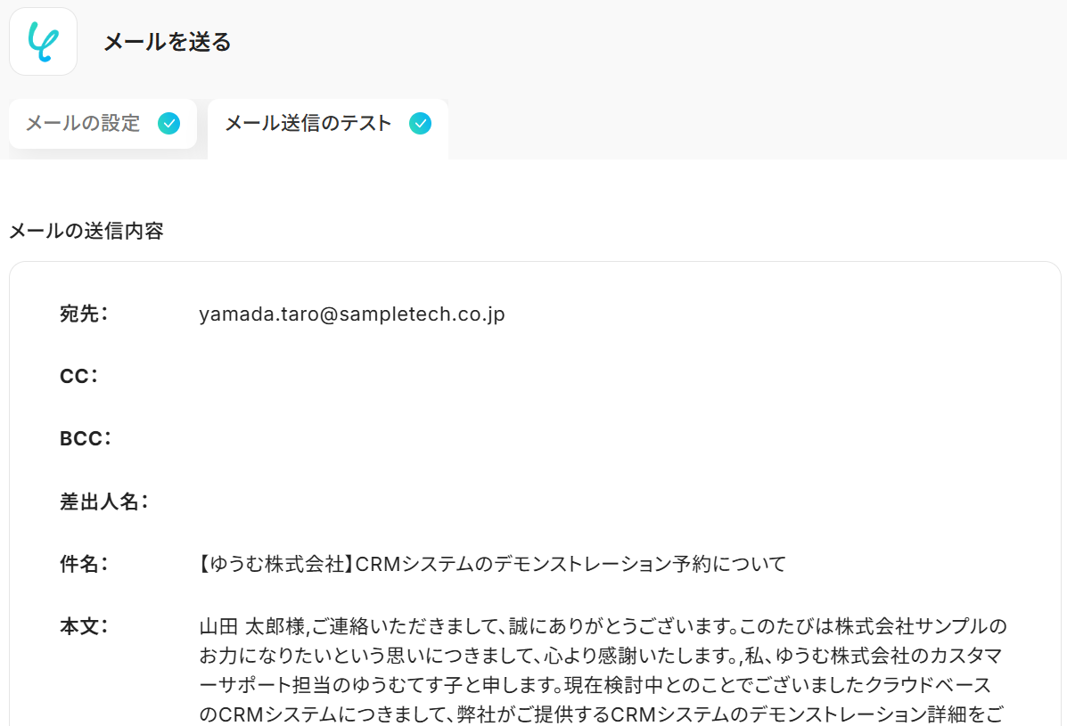 ステップ5:メールを送る設定