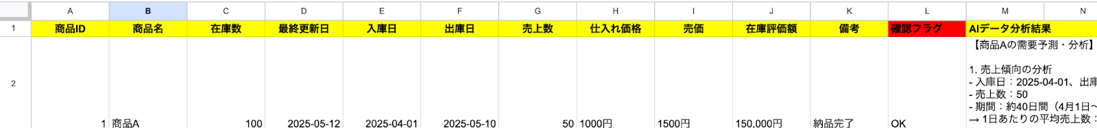 Google スプレッドシートの棚卸データをAIで分析・更新するフローを作ってみよう