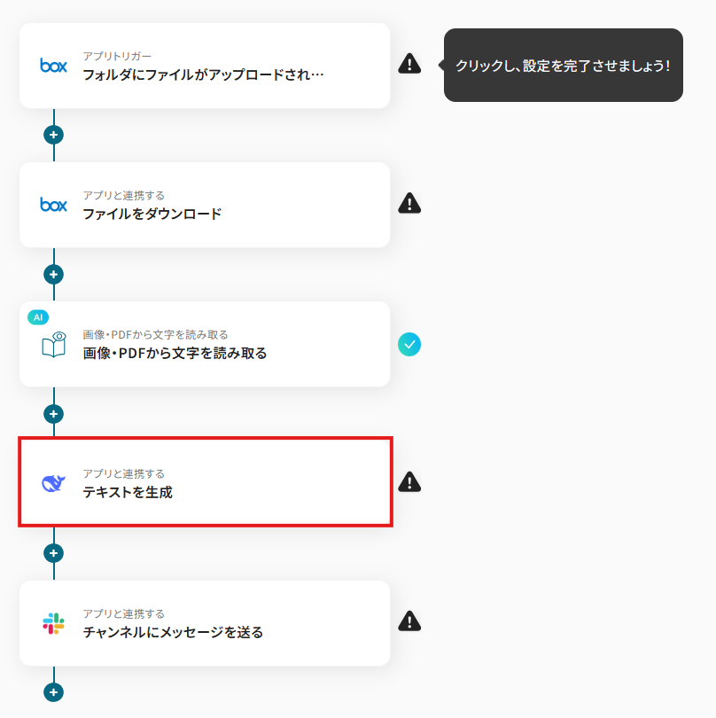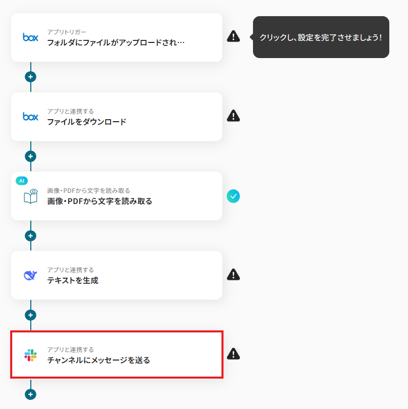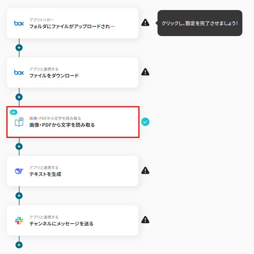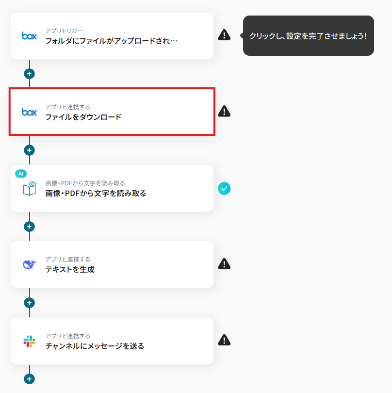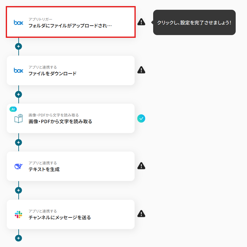 それではここから代表的な例として、「Boxに新しいPDFファイルが格納されたら、そのファイルを自動でOCR処理してDeepSeekで内容を分析し、結果をSlackに通知する」フローの作成手順を解説していきます!
