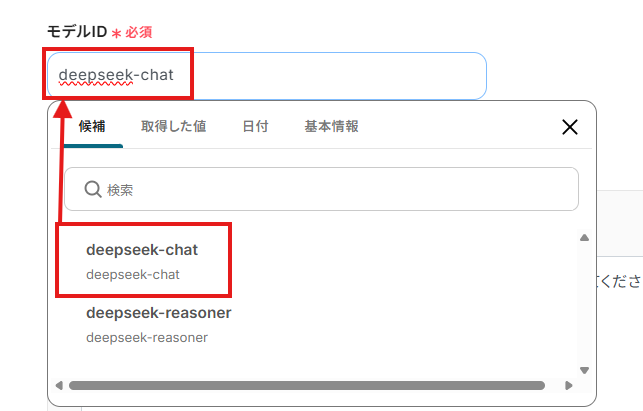 先ほどと同様に、連携可能なアプリ一覧からDeepSeekを検索します。