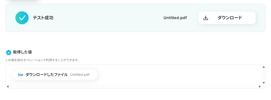 ※後続のBoxのトリガー設定時のテストで必要になります。