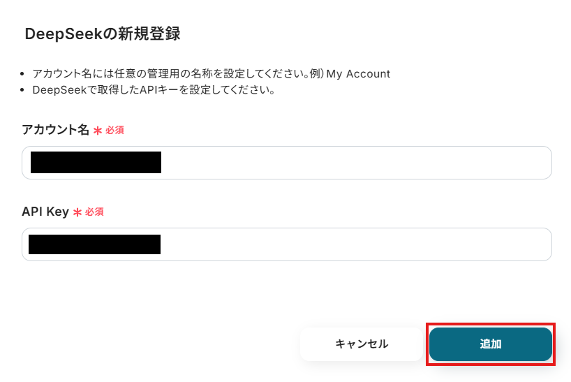 ・DeepSeek、SlackのそれぞれとYoomを連携してください。