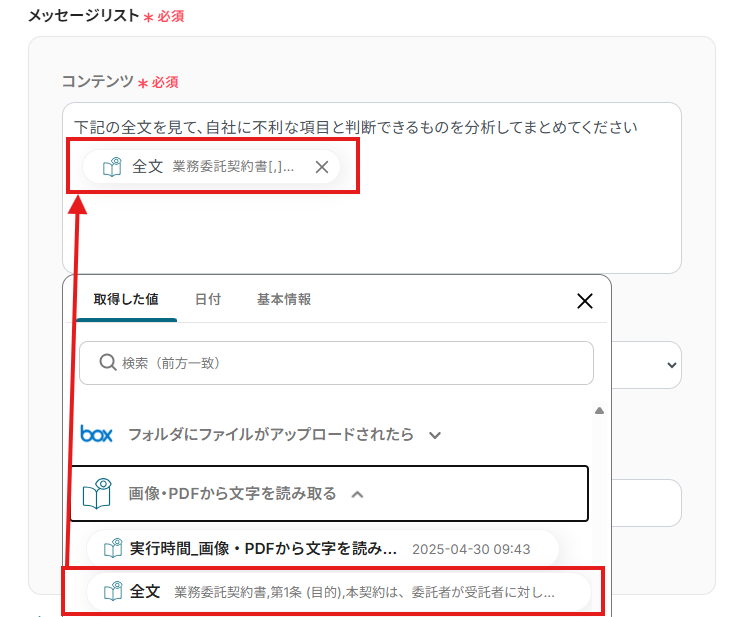 BoxやOneDriveなどのストレージサービスに新しいPDFファイルがアップロードされたタイミングで、自動的にそのファイルをOCR処理し、DeepSeekで内容を分析、要点や特定の情報を抽出して通知することもできます。