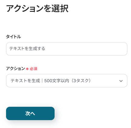 2.想定される文字数に応じてアクションを設定し、「次へ」をクリックします。